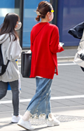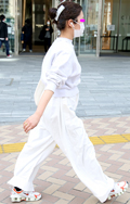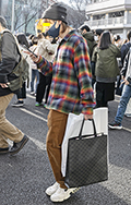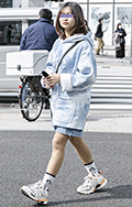 ごちゃっとしたアイテムもオーソドックスな白スニーカーを合わせ...