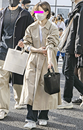 ペールトーンの組み合わせや、ちらりと覗くがま口バッグがナード...
