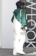 フーディにオーバーオールを重ねたボリュームのあるスタイルは厚...