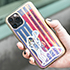 iPhone。ケースは割れない、耐久性があるものがいいけど、iFaceはみんんな使っているから被らないかわいいものを選びました。ステッカーはRIMOWA(リモワ)とAMBUSH(アンブッシュ)のコラボです。