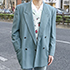 セットアップが好きでこのジャケットを買いました。シングルは社会人っぽいので、ダブルのジャケットが好きです。色がいやらしくなく、春っぽくて気に入っています。セットアップ自体結構持っていて、他には黒やベージュのセットアップを持っています。Tシャツを合わせて着ることが多くて、タートルネックは首が気持ち悪いのであまり着ません。