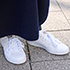 黒い靴と迷ったけど春だから白にしました。パンツが9割でスニーカーと合わせます。仕事の時は色のものを着て行けないので、地味目な色が多いです。持っている服はベーシックなものがほとんど。オニツカタイガーが好きで買いました。オニツカの白でスエード地のものも持っています。