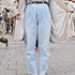 A 薄い色のデニムが欲しくて買いました。タックになっているところが良いです。履きやすいのでお気に入り。このデニムには白のブラウスを合わせたり、チェックシャツを合わせたりします。着まわせるので便利です。他にデニムは3本持っているけど全部濃いブルーのもので、薄い色はこれだけ。今日は暖かかったので春っぽい感じにしたくてこれを履いて来ました。