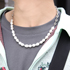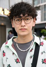 ジーンズは自作しました。下北沢のNOILL(ノイル)っていう店で、ブルージーンズがドッキングされた同じようなデザインのリメイクデニムを買ったんですけど、「これ自分でもできるかな?」と思ってやってみました。1本目の端を切って、フレアというかブーツカットのようになるイメージで2本目を合わせました。今年に入る前まではドレスっぽい格好で、ワイドなスラックスとかをはいてたんですけど飽きてしまって、でも普通のデニムは嫌だったので、こういうデザインにしました。ちょっとおかしいというか、唯一無二の人になりたかったので。パールネックレスも自分で作りました。インスタで流行っていたので。パールっておばさんくさいのかなって思っていたけど、いまはそういう風に見えないからいいかなと。チェーンの部分はエルメスのブレスっぽい雰囲気を少し意識しました。「いいところのを買おう」と思っていたんですけど、お金がなかったので、「じゃあ作っちゃえ!」みたいな。リメイクを始めたのは高校2年くらいの頃。AKROS(アクロス)という美容室の髪西さんという人が人気で、その人がリメイクをしたり、アクセサリーを手作りしたりしていたんです。しばらくやっていなかったけど、最近また始めました。