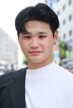 基本的に最近黒と白しか着ません。白は清潔感を見せたいとき。黒はかっこよく見せたいとき。初対面の人と会うときは絶対白。暗い色より明るい色がいいと思うからです。今日は天気がいいし、よく思われたかったから白です。本当は半袖のTシャツが着たかったけど、最近着てなかったからこのシャツにしました。いつもはパンツか靴からファッションを決めています。パンツはスキニーとか足にフィットしたものが多いです。40着くらい持っています。海外の感じが好き。いまは韓国にハマっていて、髪を伸ばしています。前はフェード(刈り上げ)にしていました。