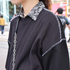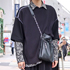 いつも黒いボトムス、トップスを着ています。黒シャツと合わせることが多いです。かっちり×ゆるっと。黒→素材→形という順番で決めます。あと、今日は洗濯していて他のパンツがなかったんです。靴も他の靴が全部壊れてしまって、いま新しい靴を探しています。今日のシャツは形がかわいくて買いました。街を観察していてはやりはじめているなと思って、プリーツのものが欲しくなったので見つけたときに買いました。