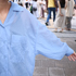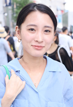開襟シャツが好きなんです。開襟シャツ目当てで探していて、値段もちょうどよくて合わせやすそうなデザインだったので買いました。水色が好きで水色のアイテムが多いです。白パンツと合わせています。今日はいているものではないですが、白いレースパンツとも合わせます。