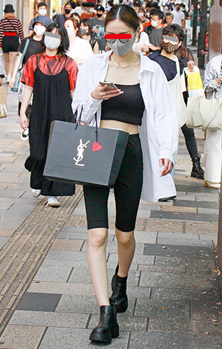 女性通行人 57.4%(1,198人) うち、スカート着用 39.0%(467人)男性通行人 42.6%(890人)