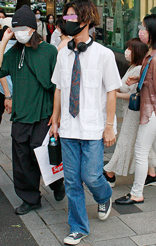 カジュアルなシャツ羽織りや定番の白シャツに加え、色や柄のシャツが増加中