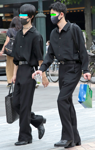 女性通行人 50.8%(847人) うち、スカート着用 45.0%(381人)男性通行人 49.2%(821人)