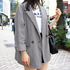 A ニットパンツとブーツを合わせたくて、ニットパンツはラインが出やすいのでそれを隠したくてジャケットを着ています。ニットパンツとロングブーツは今日おろしたてです。