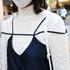 このワンピースはネットで見たときにピンクのニットと合わせていてかわいいと思ってひと目惚れしました。お店に行って白のインナーを紹介されて合わせて購入。紐のデザインが気に入ったのと、硬いからふわっとしたまま形を維持してくれるのがいい。
