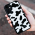 iPhone11。牛柄がかわいいのでのケースも牛柄。白系のものが多いです。