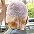 今日はスカートとインナーのシャツ、このブルゾンで丈感がだんだん短くなるようにしたくて。普段はロングコートが好きなんですけど、今日のコーディネートだとバッグも持ち手が長くて重心が下にいくのでロングでは決まらないかなと。髪は自分で剃って染めました。前は紫で、いまは紫を入れています。