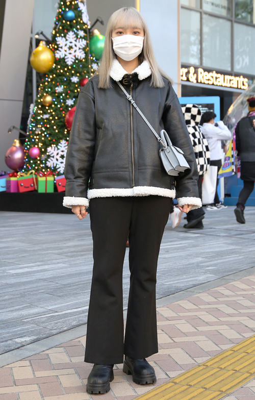 本体がA5サイズ以下のバッグで、素材がレザーまたはフェイク(エコ)レザーのバッグを持つ女性すべて。縁取り部分だけがレザーのものも含む。