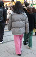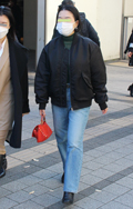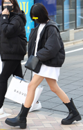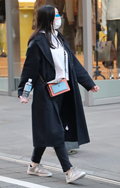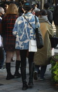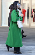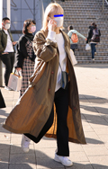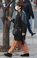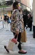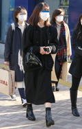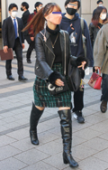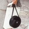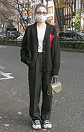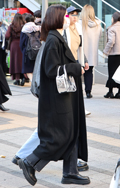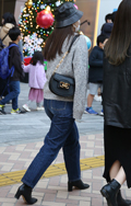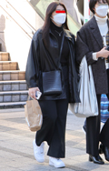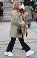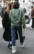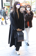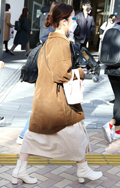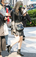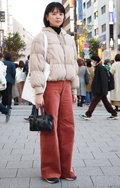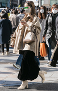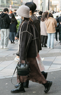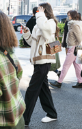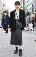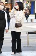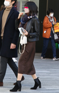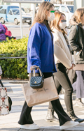 本体がA5サイズ以下のバッグで、素材がレザーまたはフェイク(エコ)レザーのバッグを持つ女性すべて。縁取り部分だけがレザーのものも含む。