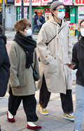 ニットキャップ+フーディーの男性も多かった。原宿ではまだまだ...