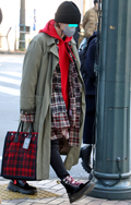 赤やチェックといったインパクトのあるレイヤードスタイルを、キ...