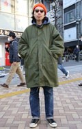 モッズコートの男性がさらに増加している。オレンジ色とカーキ色...