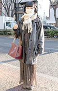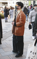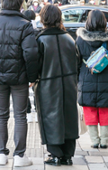 ロング丈のムートンコートも散見された。パイピングの部分を強調...