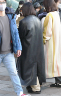 お尻が隠れるぐらいのミドル丈のレザーアウターが男女共に人気だ...