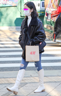 ボリュームのあるボアジャケットは、ブーツインさせて下半身をす...