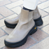 ビブラムソールに惹かれて購入しました。雪があるところに行く予定があり、歩きやすいものを探していて。形もバランスがとりやすそうでした。ボリュームがあって、細身のパンツが多いので合わせやすいです。手持ちのものが黒いものが多くて、新鮮な感じでベージュにしました。ブーツだと細身とかスクエアタイプをいくつか持っていて、あとはバレエシューズとかスニーカー。チャンキー系は初でした。歩きやすいし履きやすくてお気に入りです。