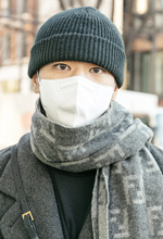 髪を切る前でのびていて、肩下まであるから邪魔だったのでニット帽をかぶりました。キャップやニット帽はストリートの格好をするときにはかぶります。