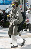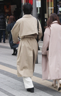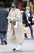 オーバーサイズのトレンチコート+白パンツの組み合せはモード好...