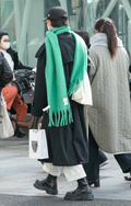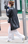 ブーツ×足首丈のアンクルパンツは女性で多く見られたが、厚底ブ...