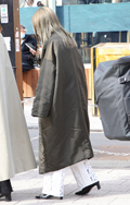 マキシ丈で重たくなりそうな真冬のスタイルは真っ白いパンツで抜...