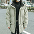 このジャケットは古着屋を巡っているときに見つけ、安さや暖かさに加えてサイズ感とシルエットが気に入り購入しました。コート3枚、ダウン2枚、中綿系アウターも3枚ほど持っていますが、手持ちのアウターの中でこれがいちばん暖かいので今日着てきました。このアウターを着るときは上がボリューミーな分、下にはくズボンを細めにすることで全体のシルエットのバランスが取れるようにしています。買った後にダウンの内側にガラケー専用のポケットが付いていると知り、古着特有の「時代を感じさせるデザイン」がお気に入りです。
