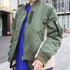 RAF SIMONS(ラフシモンズ)のMA-1を購入しようと考えていたものの、値段で悩み決めかねていました。そんな時にsacai(サカイ)のホームページから21AWのMA-1のルックを見て、気に入ったので買うことにしました。他にはコートなどアウターを4、5枚持っていますが、異素材が個性的なデザインのsacaiは好みのブランドです。今日は青色のワンピースを着用しているので、緑色のジャケットと合うかなと思って着ることにしました。普段は黒コーデの上から羽織ることが多いです。冬はブーツを履く機会が多いので、スカートで合わせたり、その日の気温を考慮してコーデを組みます。