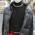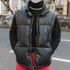 ベストなら肌寒い時でも暖かい時でも着られるから。普通のダウンとかよりも、レザーの方が締まるので、これを選びました。