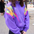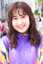 トラックジャケット自体はTikTokで流れてきて、挑戦してみたくなりました。下北沢でやっていたフリマに友だちと行ったのですが、そこにはいいものがなく、その後たまたま入った古着屋でこのトラックジャケットと出会いました。最初はもっと落ち着いた色合いのものを探していたのですが、派手な配色にひと目惚れして買いました。派手な色は、いい意味で浮く感じが好きです。めちゃめちゃな色の組み合わせで、チェッカーズみたいなコーディネートもやってみたいです。