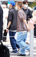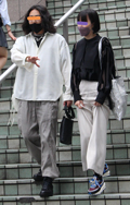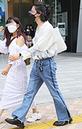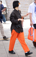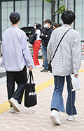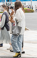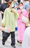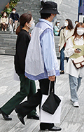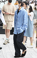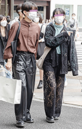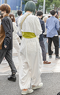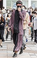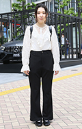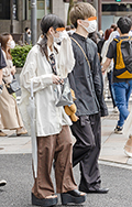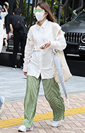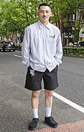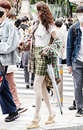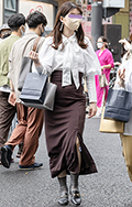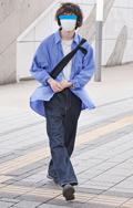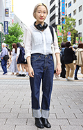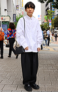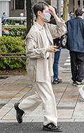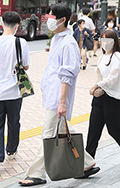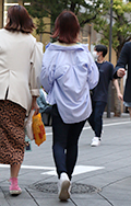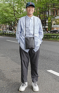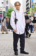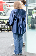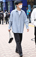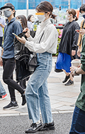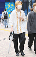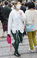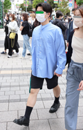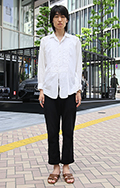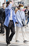身頃と袖があり、ボタンがある布帛のトップスを着用している人すべて。色や柄は問わない。襟の有無、袖の長さも問わない。シャツワンピースの場合はパンツ等とのレイヤードスタイルであればシャツに含む。