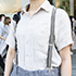 トップスをインして着ることが多いんですが、それだけだと寂しいなと思ったからサスペンダーをつけました。3つ色違いを持っています。パンツスタイルが多いです。流行とかではなく、好きだから。