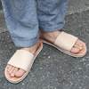 昨夏に比べてフラットサンダルが目立つ。なかでもつっかけ型のト...