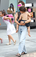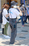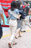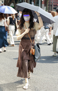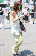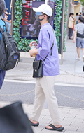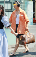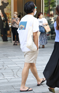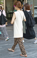 バッグとお揃いのヒョウ柄トングサンダルの女性。先月も取り上げ...