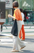 ボリュームソールのトングサンダルも散見された。かごバッグやジ...