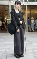 モード感たっぷりなオールブラックコーディネートの足元はボリュ...