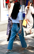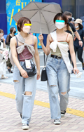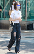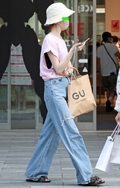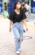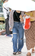 わざと膝に大きく穴を空けたようなジーンズも散見される。夏に重...