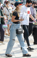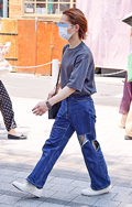 膝部分にスリットのように切れ込みをいれたデニムが目立った。真...