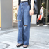 もともとデニムが好きなので10本以上持っています。薄い色よりも濃い色のデニムの方がオールシーズン着回すことができるから好きです。スキニーデニムの方が好みだけど、今日はトップスがタイトめなのでボトムスは幅広めのデザインデニムにすることでバランスよくコーディネートしました。持っているデニムの4〜5本はダメージで昔はクラッシュが多いデザインを着ていたけど、最近はシンプルなダメージ加工のものを選んでいます。普段の服装は白黒が多いけどアパレルスタッフのスナップなどを参考にして、今年の夏は緑色のアイテムにチャレンジしてみたいです。