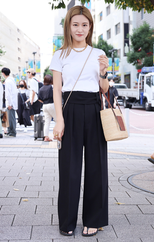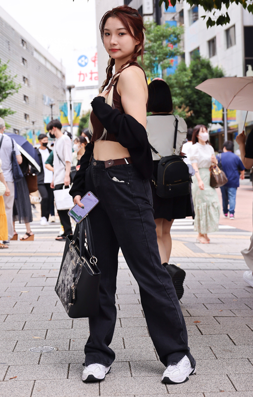 トップスをボトムスにインしていたり、肌が見えるほど丈の短いトップスを着用している女性すべて。トップスの色や素材、デザインは問わない。また、その上にシャツやジャケット等を羽織っている場合は、その丈がインナーと同程度のショート丈であれば含む。