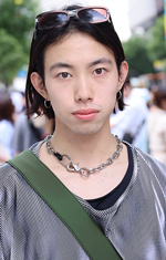 トータルで見てアイテムは少ないんですけれど、靴で持っているのはSAINT LAURENT(サンローラン)のもの。レディース要素が強くてパンチが強いです。いまはスクエアトゥが欲しいです。トップスがいかつくても、中和してくれるので。タイトなシルエットなので、アクセサリーなどゴツめのものをスタイリングしています。