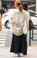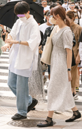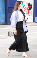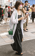 ロング丈×ロング丈のバランスも散見される。右はワンピースのよ...