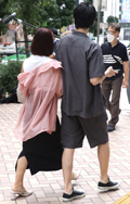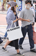 ジルサンダーとアクネスタジオのショッパーを持ったカップル。ス...