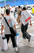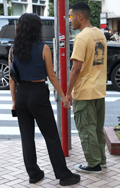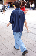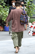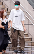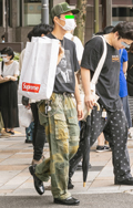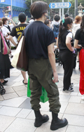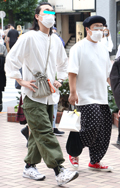 カーゴパンツ・裾絞りパンツの2人組に遭遇。革靴やクリーンな白...