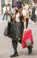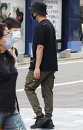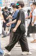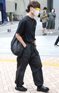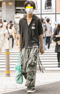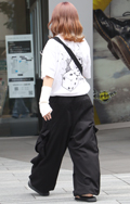 カーゴパンツデザインの黒いパンツが案外多かった渋谷地点。ポケ...